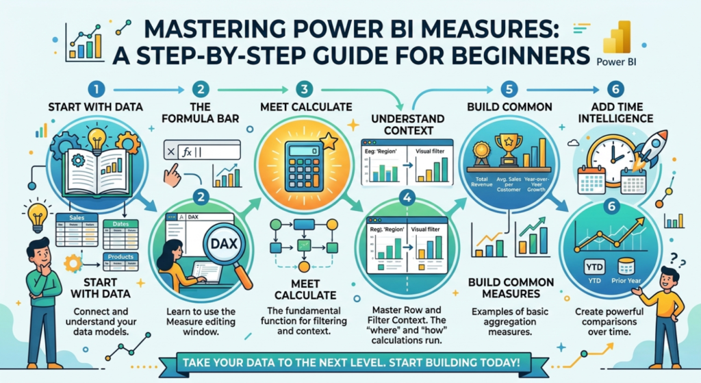 Measures in Power BI are dynamic DAX-based calculations used for aggregations like SUM or AVERAGE. They adjust automatically to filters and visuals, making reports interactive, efficient, and essential for data analysis and KPIs.
